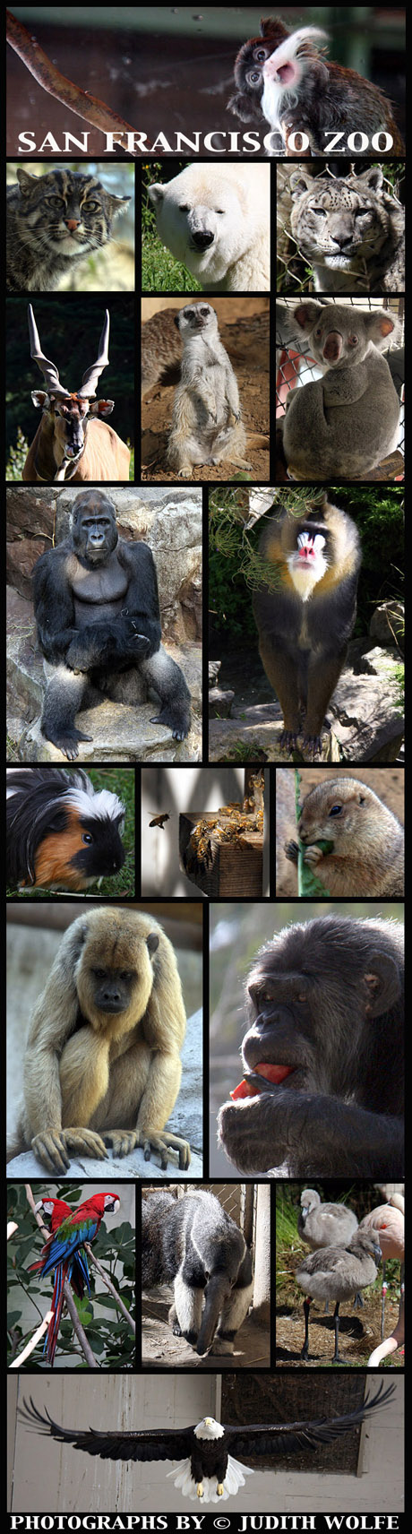 A trip to the West Coast is not complete without a visit to the always terrific San Francisco Zoo.  While at the Zoo we were treated to some unforgettable behind the scenes action courtesy of a wonderful Zoo Docent and some very patient Keepers. Thanks to all for their time and thoughtfulness.  If you want to see the photos larger go to www.judithwolfe.com.