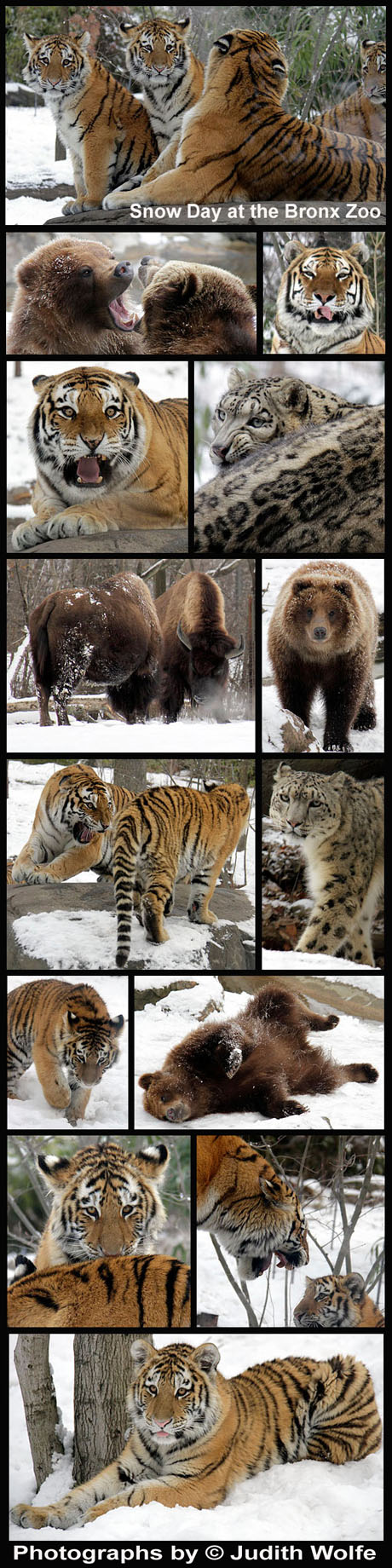 The lure of freshly fallen snow and seeing three eight month old tiger cubs frolicking was too much for us to ignore.  So we hopped up to the Bronx Zoo yesterday and had a snow-sational time.  Don’t forget to watch the tiger cub video below today’s snow montage. Zootastic!