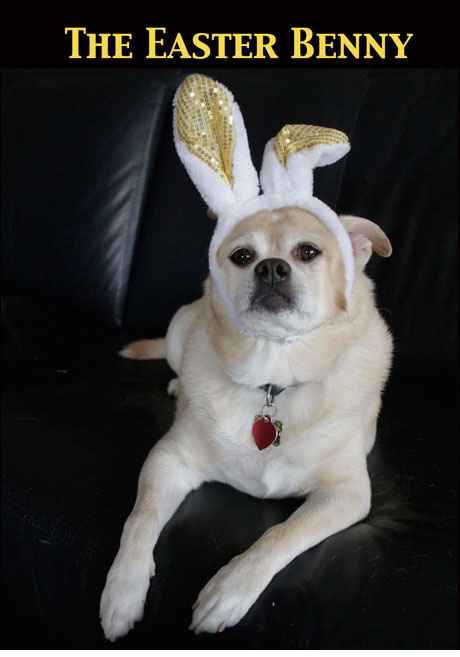 Rarely a holiday goes by (whether we celebrate it or not here at Casa Lobo) that doesn’t cry out for a new hat that Benny the dog can wear. Enjoy this year’s Easter Benny..