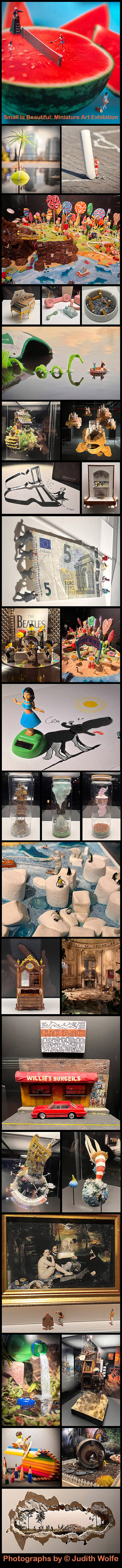 Run, don’t walk to see this wonderful, fun, inspiring exhibit that opened this week in Manhattan (718 Broadway). Small is beautiful, Miniature Art presents 32 international artists and their work. ‘It is an incredible journey and a unique experience that offers behind-the-scenes access to small-scale universes full of artistry and poetry, whose only limit is the creative vision of their authors’. I left my own reflection in some of these photos so you can see how very small the artwork is. This is a delightful voyage inside creative minds and their worlds. It is suitable for the entire family. Don’t forget to watch the video towards the end of the exhibit. And of course you exit through the fun gift shop. They told me it will be there through August.