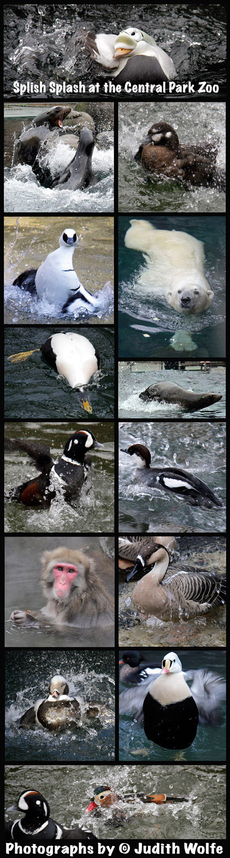 Splish splash they were takin’ a bath! The Central Park Zoo has a fabulous collection of waterfowl. But they are not the only ones that enjoy splish splashing at the zoo. Come visit!