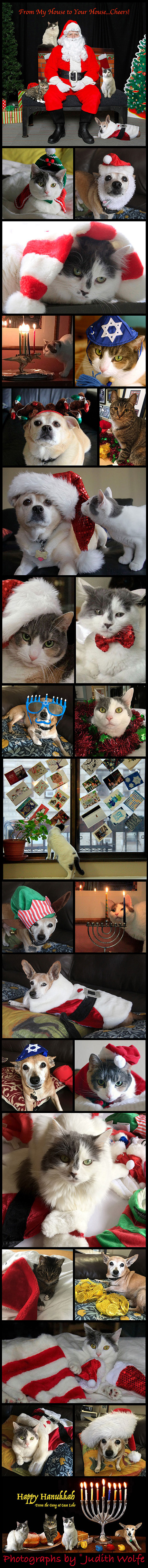 Holiday time is always fun at my house. We celebrate most holidays (especially the ones that demand we wear a hat). My little gang of critters are all good sports and since today is Christmas we would like to share some of these fun moments with you from the past and present. Wishing you al a very merry and a happy. Cheers!