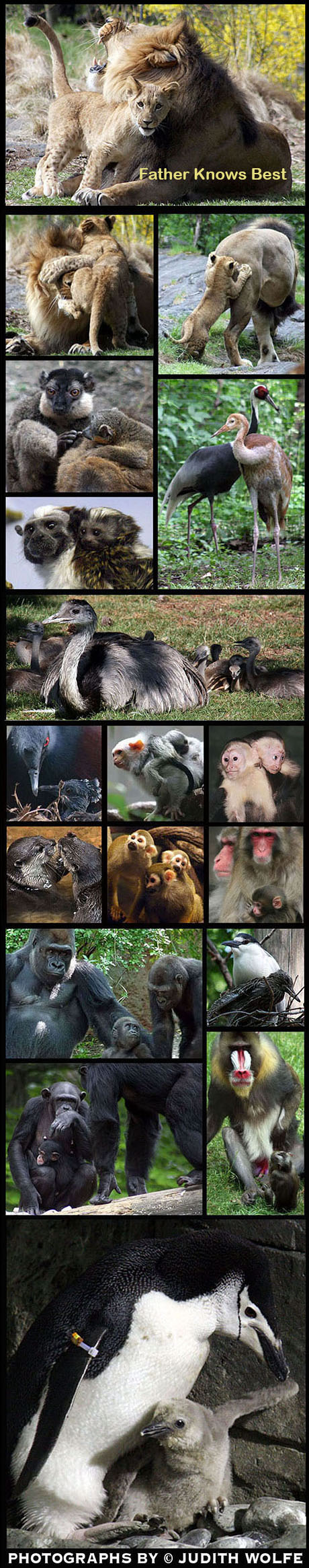 The photo above was taken before the beginning of time. It is of my father, my dear sister and me. My father is gone a very long time and our memories of him (while all good) are fuzzy. He was kind, funny and sang a little like Perry Como. He loved magic and playing pinochle. I even remember some of his card buddies names – Blind Jimmy and Fat Al are two that come to mind. The animal kingdom is dominated by female caregivers but there are exceptions. I have included some of those joint caregivers in today’s salute to fathers. Happy Father’s Day!