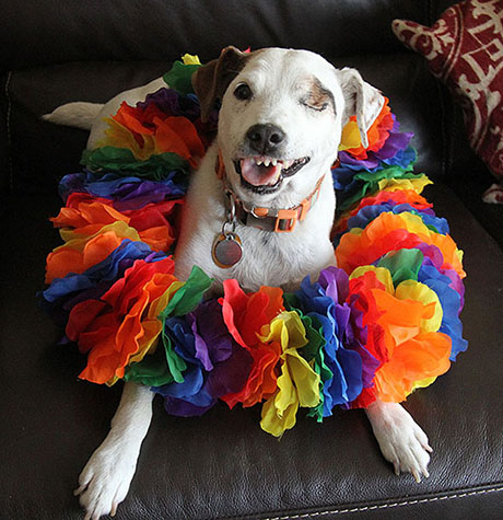 Today is a big day in NYC. The 50th anniversary of the Stonewall riots is being celebrated with a larger than ever parade down Fifth Avenue. It is going to be loud and proud. Today’s salute features photos from previous Pride parades as seen from my small perch at Casa Lobo. So much progress has been made but more needs to be done. Have fun and be safe. The top photo is One-eyed Jack from last years festivities. That little guy crossed over the rainbow bridge last November. Miss him every day.