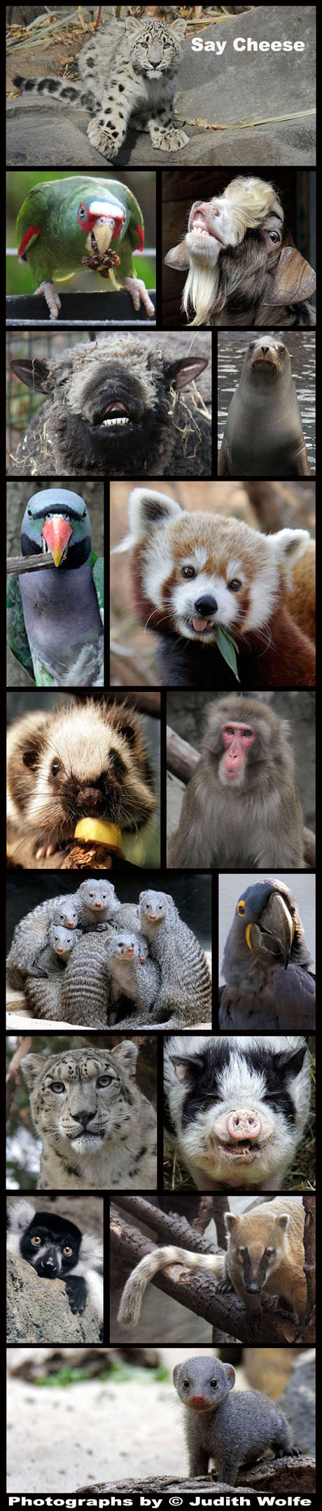 Zoo photography is both challenging and fun. They say the eyes are the window to the soul – I don’t know about that – but I do know if you can capture a gorgeous creature looking back at you – it is a great photo moment. A special connection is made between the subject and the viewer. Today’s montage is devoted to those moments.