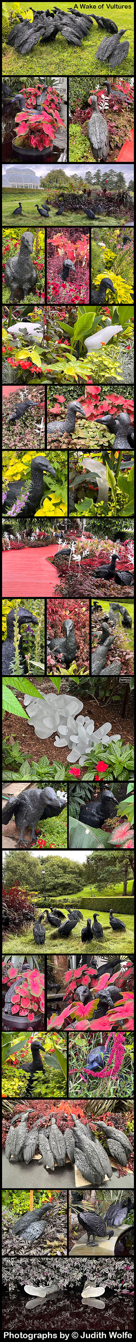 In flight, a flock of vultures is a kettle and when the birds are feeding together at a carcass, the group is called a wake. We visited NYBG https: on Friday and both enjoyed this very different and fascinating exhibition. The vultures are both inside and outside the Conservatory. Artist Ebony G. Patterson, after a year long residency at the NY Botanical Garden created for the conservatory her exhibition called “…things come to thrive…in the shedding…in the molting…”. Patterson is the first artist-in-residence the NYBG has ever had. The vultures in the installation are a clear gesture towards the idea of death. But at the same time, Patterson explored their role within the broader ecosystem, and how by “consuming the landscape, they’re revealing things within it,” she says. They’re consuming our nature’s wounds, “as an act of care … and in doing so, they reveal other things that are hidden, so bodies become revealed.” The exhibit is on through October 22, 2023. I encourage your visit. NY Times review here Orchidaceae March 6, 2022