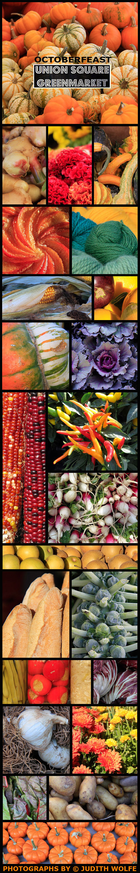I admit to not being useful in a kitchen and to being a very picky eater but I do enjoy going to the Union Square Greenmarket to photograph their seasonal offerings. The colors, shapes and smells are a feast for both the palate and the palette. Enjoy my Octoberfeast!