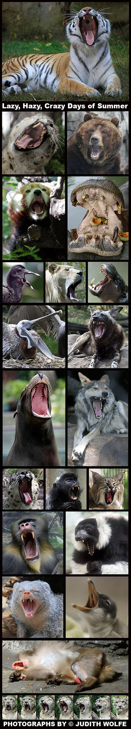 The lazy hazy crazy days of summer are upon us. It is fun to photograph animals mid-yawning. Enjoy today’s photo montage and try to keep yourself from a yawn.